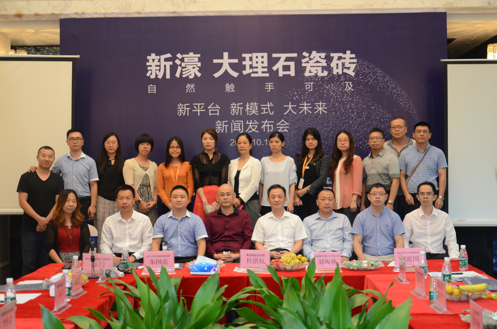 10月19日上午,新濠大理石瓷磚“新平臺 新模式 大未來”新聞發布會在佛山新濠展廳召開。華夏銀行佛山分行副行長劉振林、金融部總經理謝文斌,佛山陶瓷行業協會秘書長羅青,昊晟集團總經理杜湛權、財務總經理羅燕清,新濠大理石瓷磚品牌營銷總經理朱國亮、副總經理柯寓國,產品事業部策劃總監孫慶,以及來自行業的近30家主流媒體記者等出席發布會。