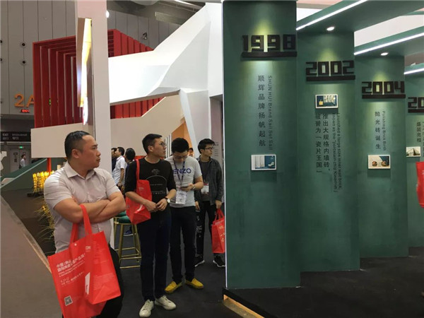 在潭洲國際會展中心的“本色·出色丹青館”2019順輝瓷磚主題館全國巡展(佛山站)進入第二天,順輝紅和丹青綠的更多種藝術組合和跨界混搭還在繼續,來往之人無不稱贊,原來瓷磚還能這么玩!